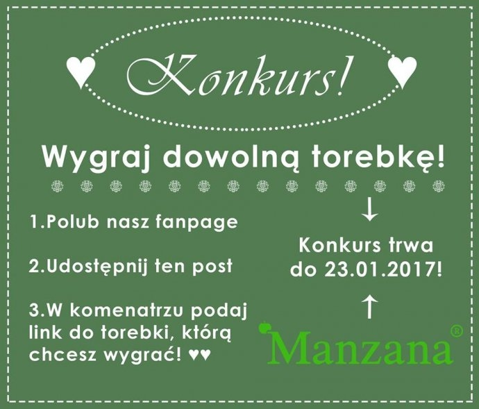 Wystarczy tylko: polubić fanpage Manzana, udostępnić post i wpisać w komentarzu jaką torebkę chcesz wygrać!
