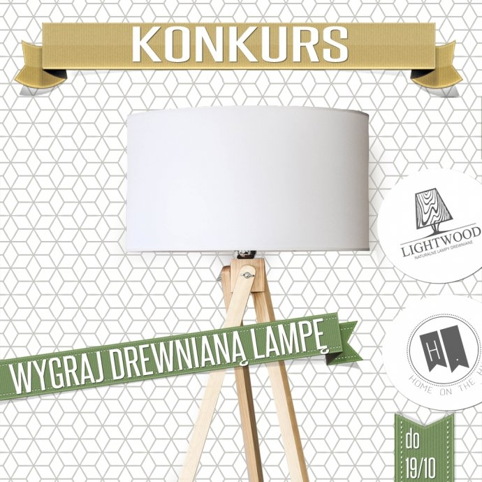 Drewniana, podłogowa na trzech nogach lampa w wybranym przez zwycięzcę kolorze o wartości 450 zł.