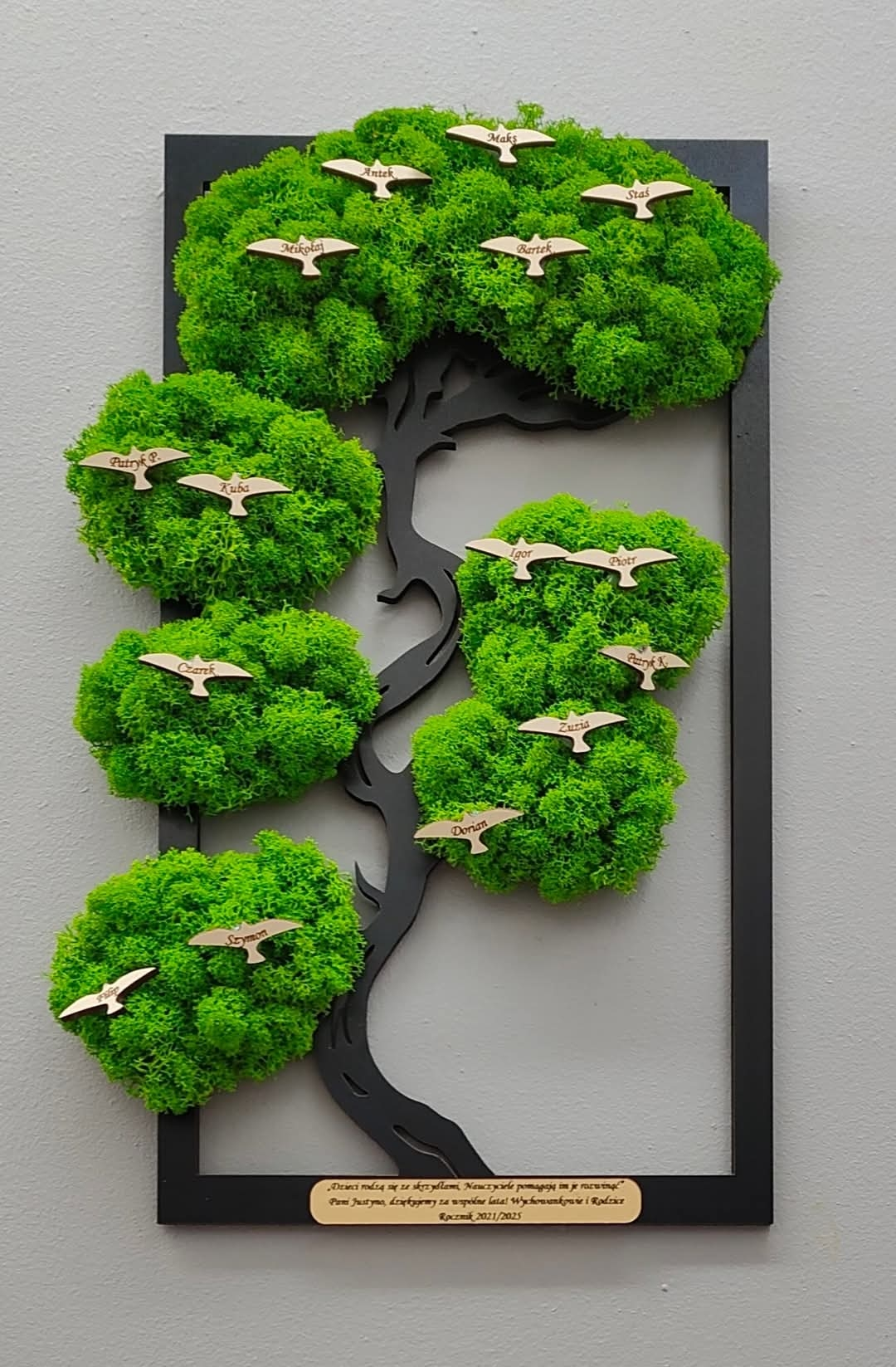 drzewko bonsai z mchem w rozmiarze 40x26 - w komplecie ptaszki plus złota tabliczka z dedykacją. Wygrana osoba sama skonfiguruje swoje własne drzewko, jego realizacja / wysyłka odbędzie się po Wielkanocy.