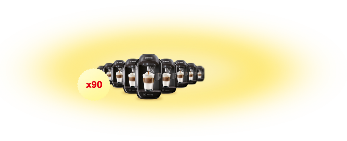 90 (dziewięćdziesiąt) Nagród Głównych o wartości 221,00 zł (dwieście dwadzieścia jeden złotych) każda, na które to nagrody składają się: nagroda rzeczowa w postaci ekspresu do kawy Bosch Tassimo o wartości 199,00 zł brutto