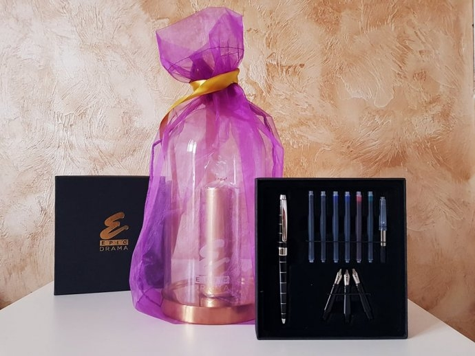 5x elegancki zestaw EPIC Drama: pióro z zapasem naboi + świeca