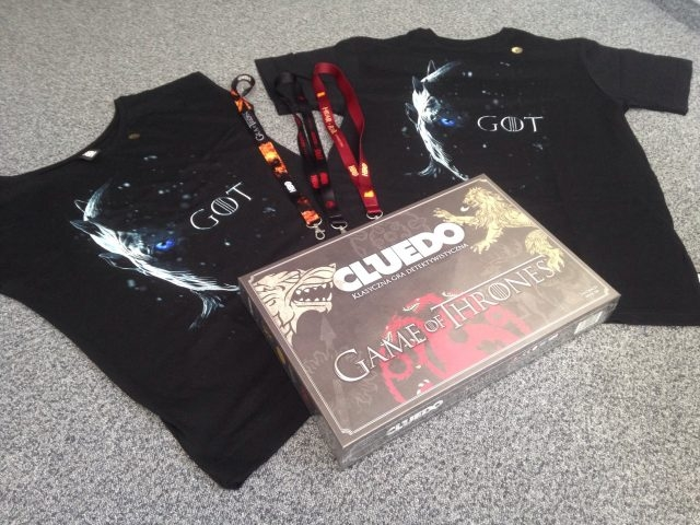 4 gry planszowe Cluedo, 6 koszulek i 10 smyczy z motywami z Gry o tron