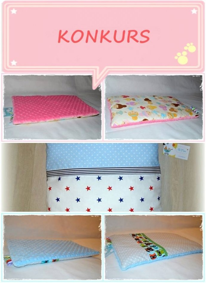 jedna z trzech nagród: różowa podusia minky, niebieska podusia minky oraz podusia w gwiazdki.
