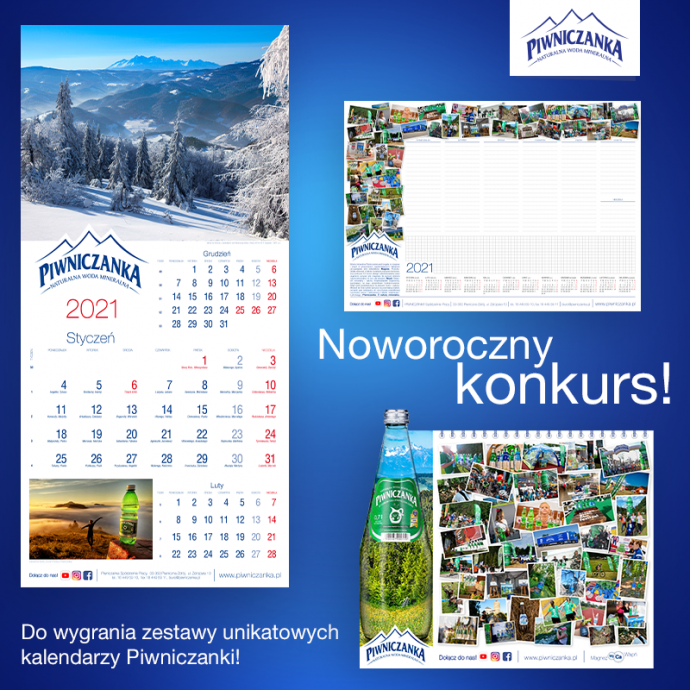 8 zestawów wyjątkowych kalendarzy z Waszymi zdjęciami z konkursu Doceń Polskę z Piwniczanką (na ścianę, na biurko oraz biuwary)!