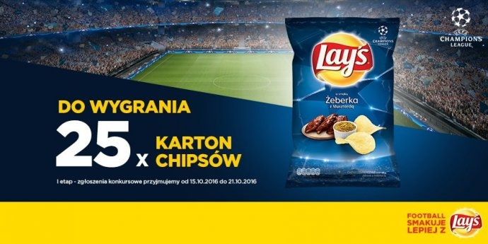 W każdym z 4 etapów konkursu do wygrania 25 x karton chipsów Lay's