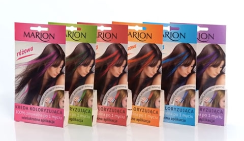 10 zestawów - w każdym wszystkie 6 kolorów kredy do włosów Marion Kosmetyki