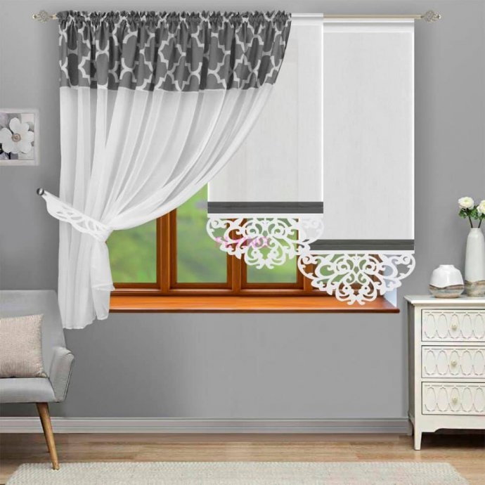 Komplet pasuje na szerokość karnisza 200-220 cm
