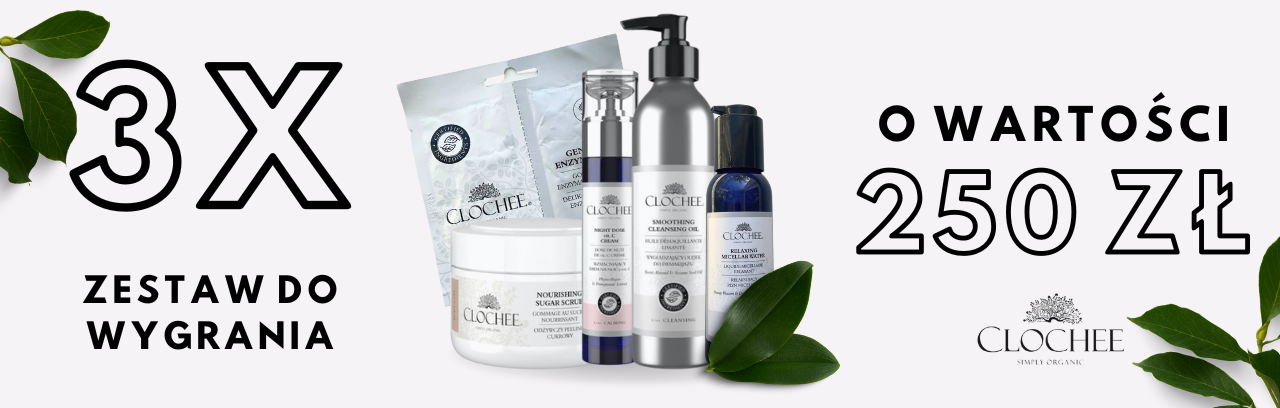 trzy zestawy kosmetyków marki Clochee o wartości 250 zł. W skład zestawu wchodzi: