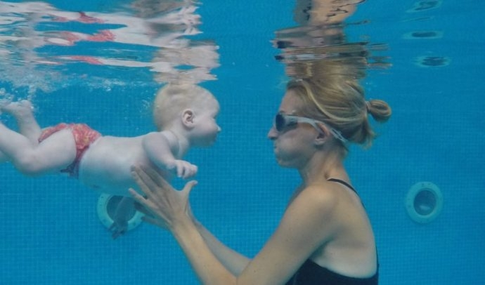zdjęciem lub filmikiem obrazującym miłość dziecka do wody.