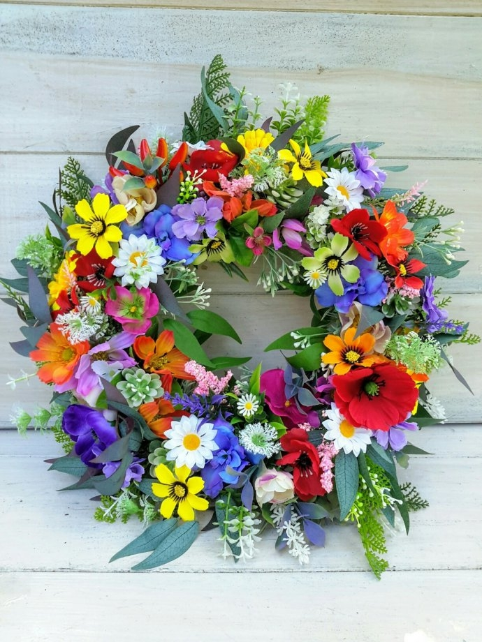 letni, kwiatowy wianek o średnicy ok. 35 cm