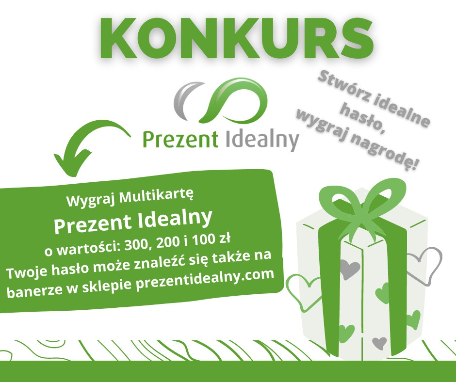 - 1 miejsce Multikarta Prezent Idealny o wartości 300,00 zł – do wykorzystania w sklepie internetowym prezent idealny.com oraz umieszczenie zwycięskiego hasła reklamowego na stronie głównej sklepu internetowego prezentidealny.com