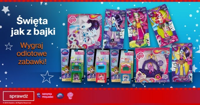 Lalki z serii „My Little Pony: Equestria Girls – Igrzyska Przyjaźni”, zabawki My Little Pony “Świecąca Rarity” oraz My Little Pony „Karoca Księżniczki Twilight Sparkle” czy figurki z serii „Littlest Pet Shop”