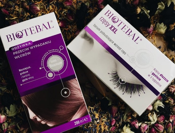1 z 8 zestawów Biotebal, składających się z odżywki do włosów i odżywki do rzęs