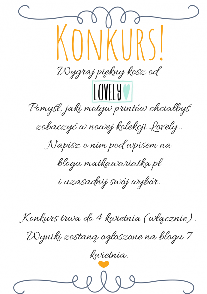 Pomyśl, jaki motyw printów chciałbyś zobaczyć w nowej kolekcji Lovely... Napisz o nim pod wpisem na blogu matkawariatkapl i uzasadnij swój wybór.