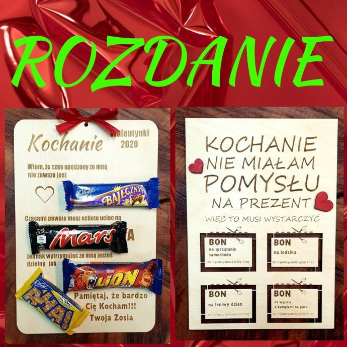 - Personalizowana tabliczka ze słodkościami lub grawerowana tabliczka z bonami do wyłamania