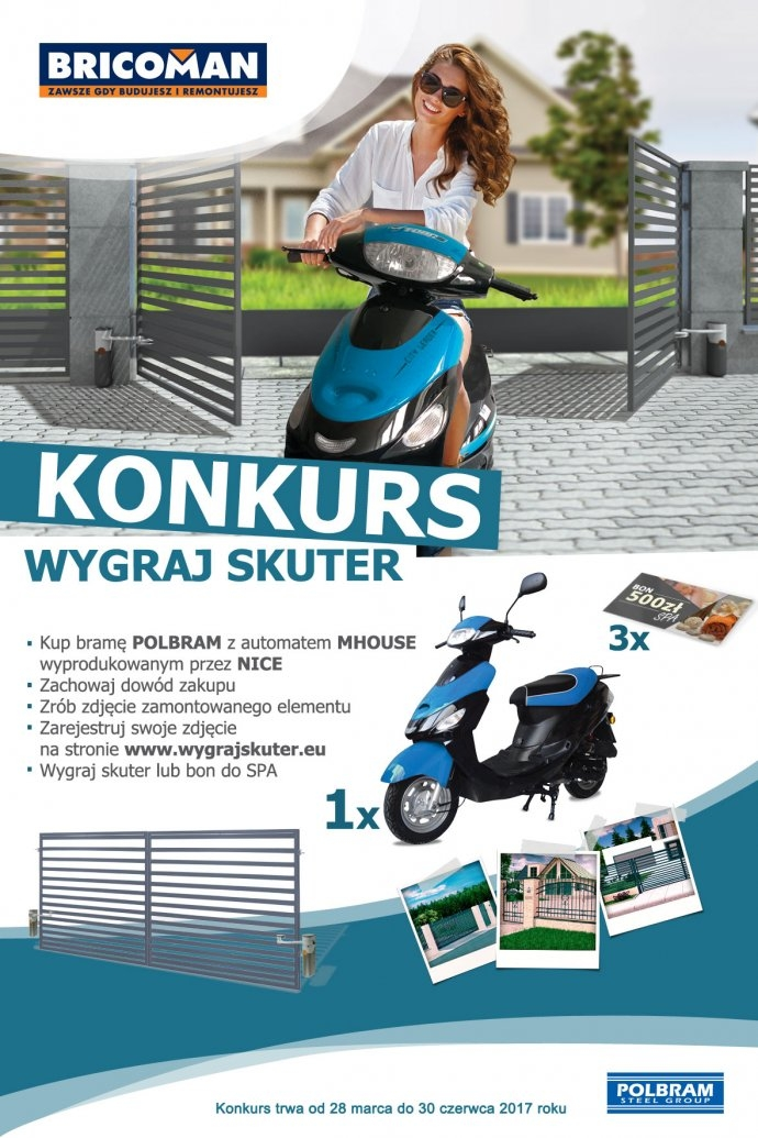 Kup w sklepie BRICOMAN bramę POLBRAM z automatem MHOUSE wyprodukowanym przez NICE i wygraj atrakcyjne nagrody