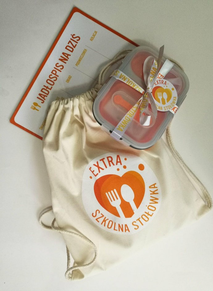 5 zestawów związanych z programem "Extra Szkolna Stołówka". Każdy zestaw składa się z: bawełnianego plecaczka, silikonowego lunchboxu, menu w postaci zmywalnego magnesu na lodówkę i specjalnego pisaka.