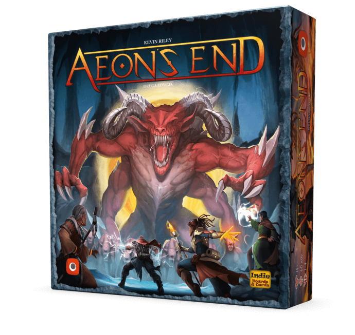 2 wielkie pudła z polską wersją drugiej edycji gry karcianej AEON'S END od wydawnictwa Portal.