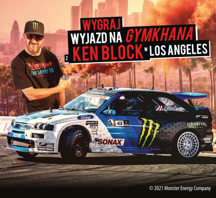 - 1 x wyjazd na Gymkhanę do Los Angeles dla 2 osób / termin wyjazdu 11.2021 roku / wygrana obejmuje przelot dla 2 osób klasą ekonomiczną w obie strony, zakwaterowanie dla 2 osób w hotelu minimum 3 gwiazdkowym, spotkanie z Kenem Blockiem. Wartość nagrody to 20 000 zł brutto.