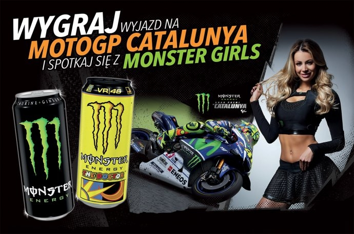 - zarejestrować się na stronie monsterpromocja.pl wypełnić prawidłowo zgłoszenie konkursowe polegające na kreatywnej odpowiedzi na pytanie: Któremu zawodnikowi sponsorowanemu przez Monster Energy startującemu w MotoGP kibicujesz najbardziej i dlaczego?