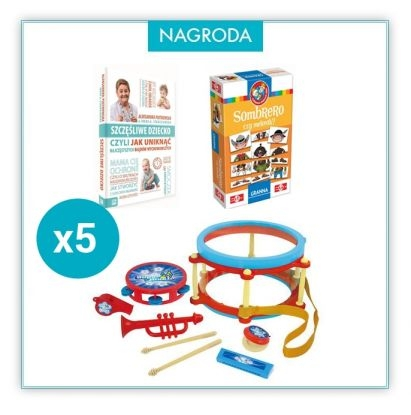 5x zestaw: instrumenty Smiki, gra Granna Sombrero czy melonik? oraz książka Aleksandry Piotrowskiej "Szczęśliwe dziecko, czyli jak uniknąć najczęstszych błędów wychowawczych" z autografem