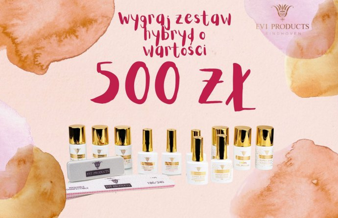 Do wygrania duży zestaw startowy naszych produktów. Znajdziecie w nim: Trzy bazy o poj. 7 ml, Cztery żele o poj. 15 ml, Top o poj. 7 ml, Top Mat Velvet, Primer, Sześć pilników (każdy po 2 z różnych ostrości), Trzy bloki polerskie, Cztery lakiery hybrydowe kolorowe, Lakier Platinum.