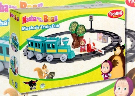 PlayBIG Masza i Niedźwiedź Klocki zestaw kolejowy