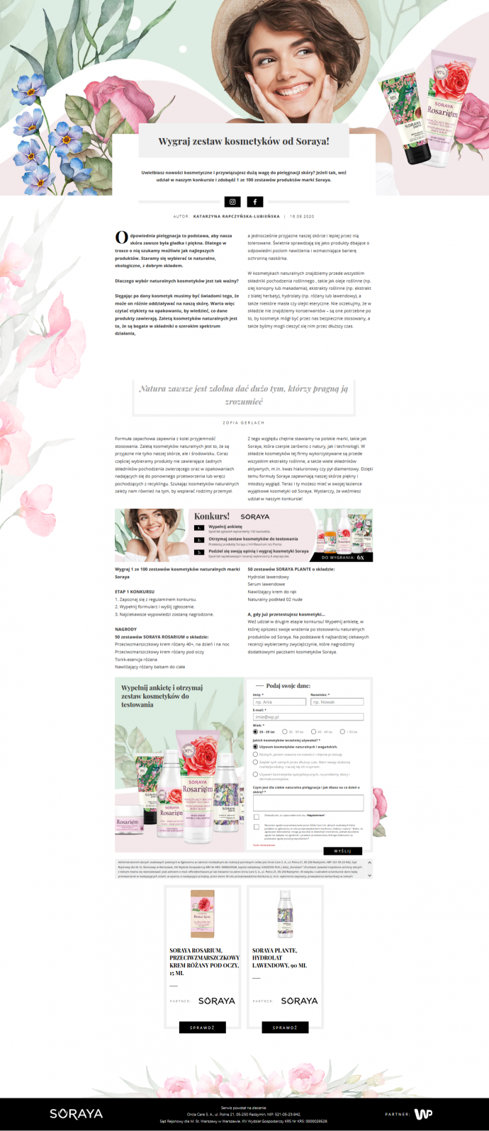 Na podstawie 6 najbardziej ciekawych recenzji wybierane są zwyciężczynie, które otrzymają dodatkowe paczki kosmetyków Soraya.