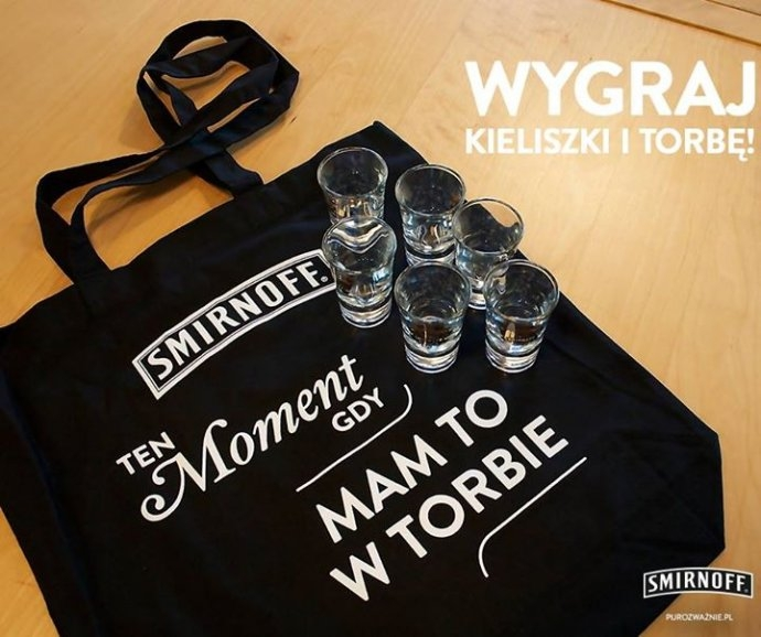 5 (pięć) nagród w postaci zestawu: 1 torba materiałowa oraz 6 kieliszków Smirnoff o łącznej wartości zestawu 20 PLN brutto.