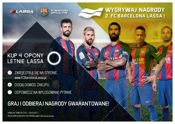 Uczestnikiem Konkursu jest osoba, która dokonała jednorazowego zakupu kompletu 4 (czterech) opon letnich Lassa w okresie od dnia 13/03/2017 r. do 07/05/2017 r.