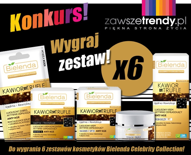 Aby wygrać serię 4 kosmetyków CELEBRITY COLLECTION Kawior & Trufle Bielenda - krem na dzień, krem na noc, krem pod oczy i luksusowy zabieg serum+maseczka powinnaś: