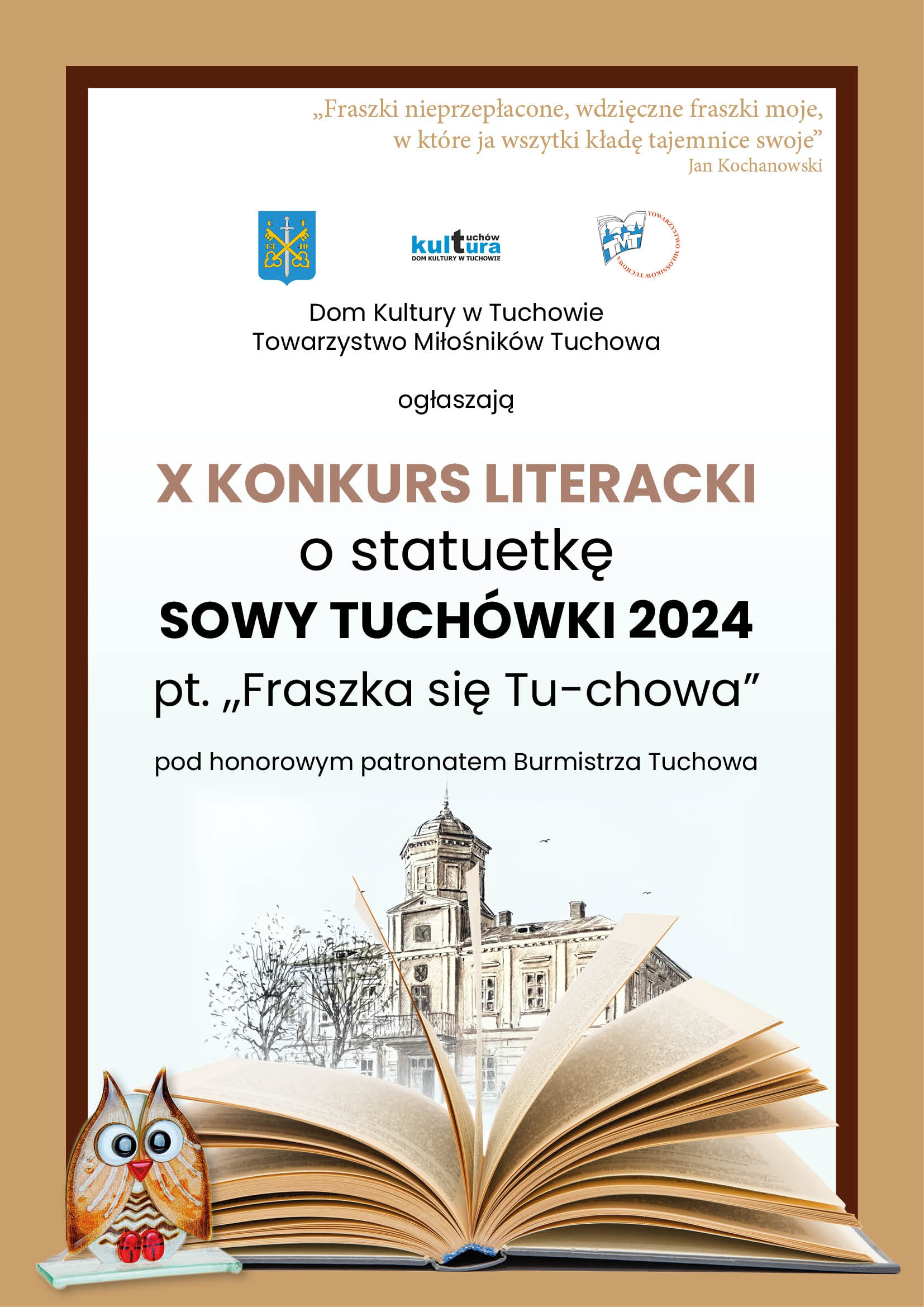 X KONKURS LITERACKI o statuetkę SOWY TUCHÓWKI 2024 pt. "Fraszka się Tu-chowa"