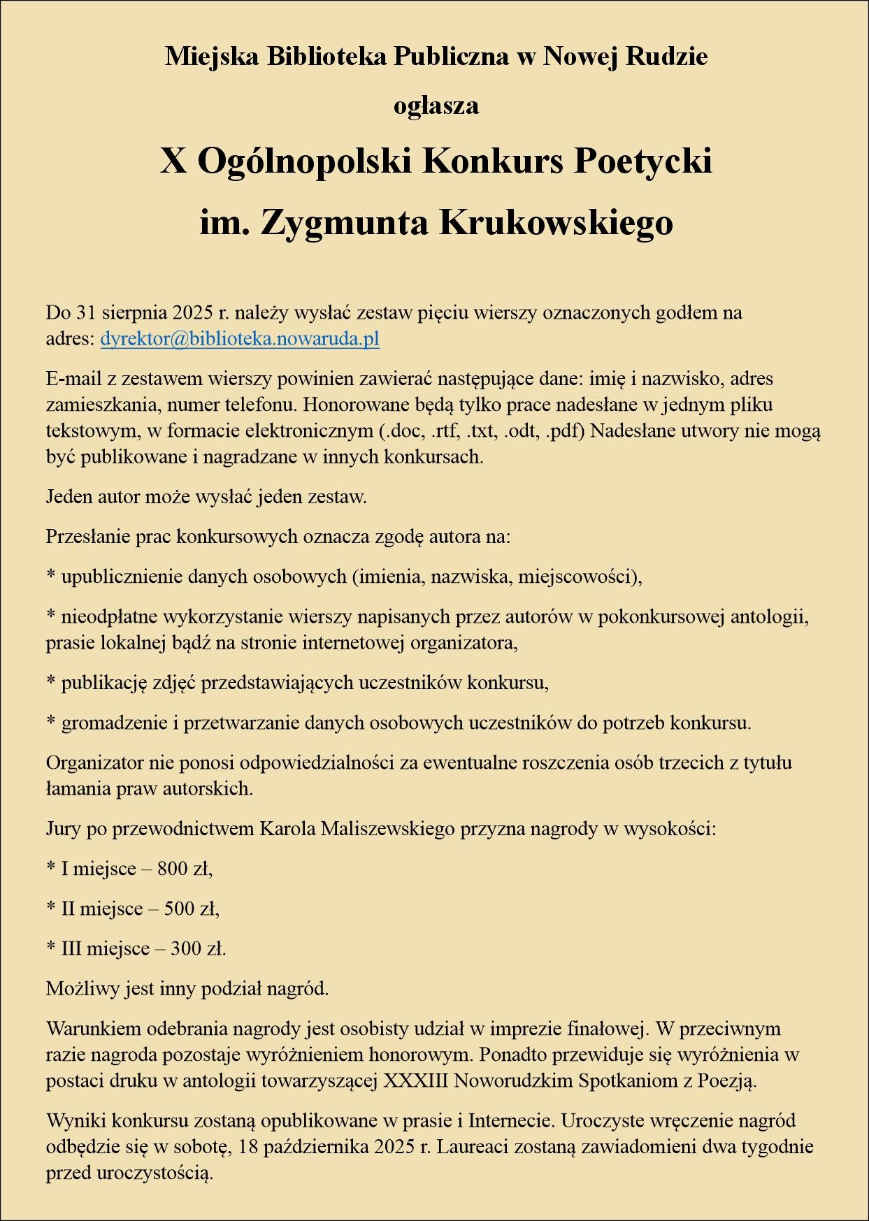 X Ogólnopolski Konkurs Poetycki im. Zygmunta Krukowskiego