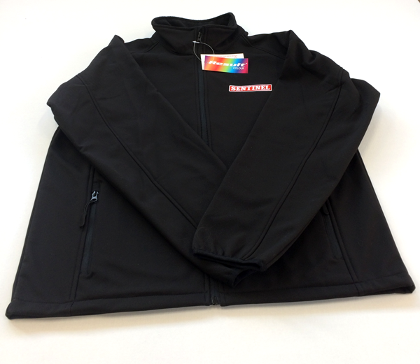 czarna kurtka termiczna z czerwonym logo Sentinel, rozmiar L.