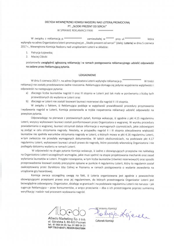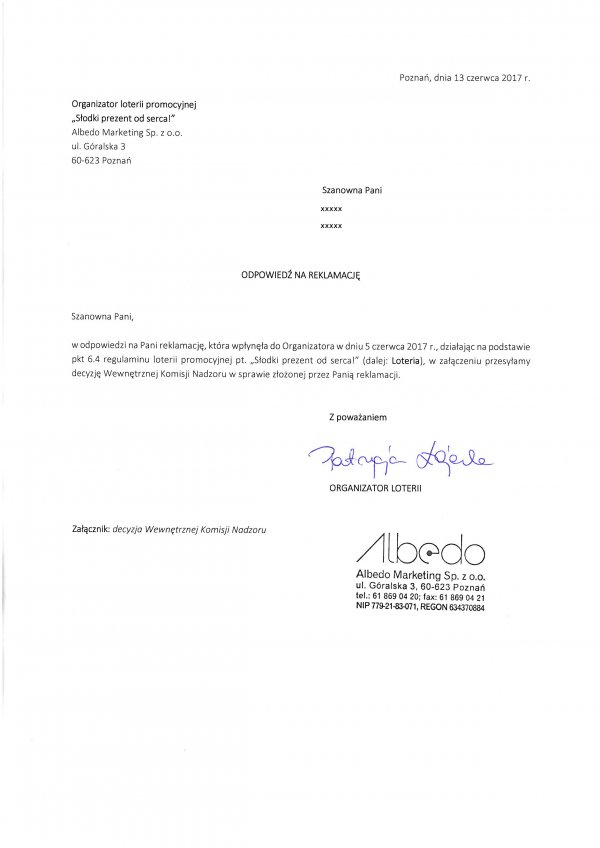 Nie było wspominane o złożeniu doniesienia do prokuratury na agencję, prosiłbym o ponowne przeczytanie mojej wypowiedzi, tam jest mowa o pewnych grupach osób. Z mojej strony podziękowanie dla Pani za złożenie oficjalnej reklamacji, choć odpowiedź była do przewidzenia, to jednak samo działanie z Pani strony ma tutaj ogromne znaczenie!