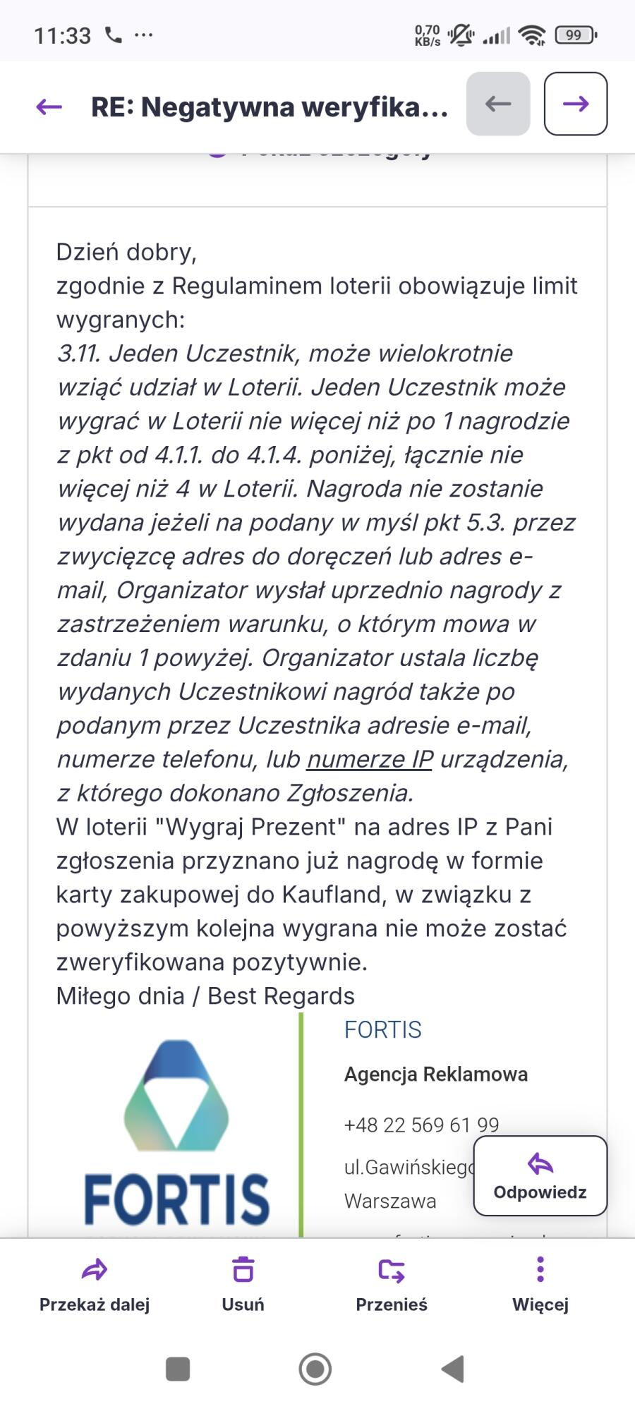 * Organizator ustala liczbę wydanych Uczestnikowi nagród także po podanym przez Uczestnika adresie e-mail, numerze telefonu, lub numerze IP urządzenia z którego dokonano Zgłoszenia.