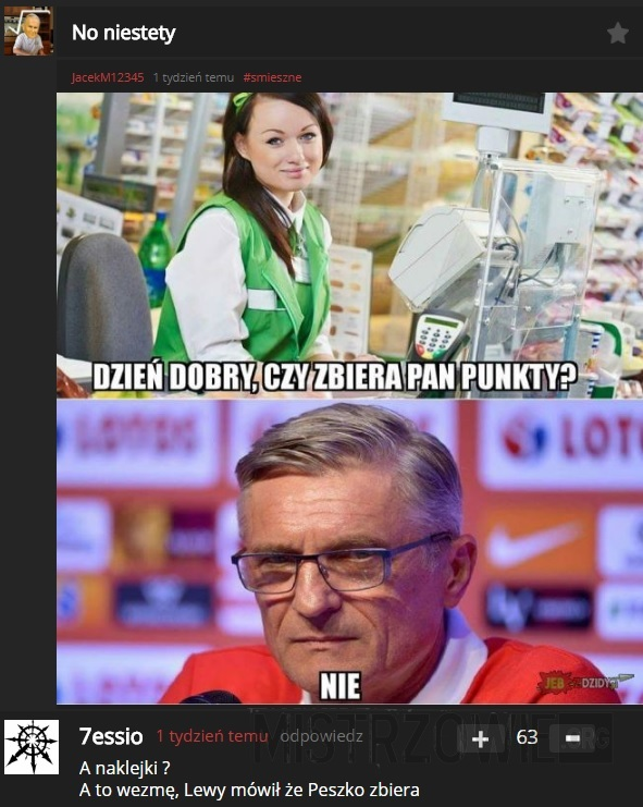 przykro, przykro. typ coś tam wcześniej zdziałał, ok, ale nie może być trenerem ktoś, kto nie ogarnia grupy, którą ma pod sobą, a dodatkowo odwala takie akcje jak w meczu z Japonią. no nie. tu trzeba kogoś z jajem, który za jaja wszystkich weźmie. i nie, wcale nie z zagranicy (tylko... Probierz chyba nie chce
