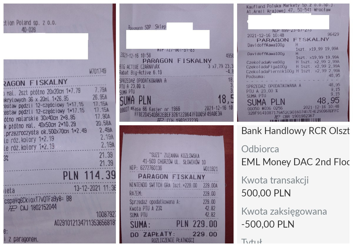 Nie chcę wrzucać tu miliona zdjęć, więc wrzucam kolaż z paragonów, ale wszystkim chętnym podeślę paragony w pełnej rozdzielczości na maila albo pw.