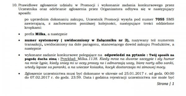 • numer systemowy, nazywany tez numerem transakcji, uwidoczniony na doleparagonu, stanowiącego dowód zakupu Produktów, a następnie