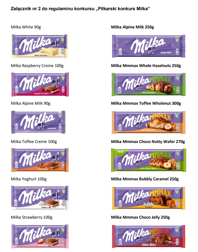 Ta klasyczna Milka 250g jest na stronie producenta opisana właśnie jako Mmmax, a w regulaminie konkursu jej nazwa jest pogrubiona tak jak inne z tej promocyjnej serii.