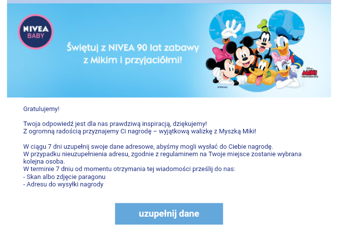 Wygrana walizka z Myszką Mickey  z Nivea emotka Wyświetl w wątku >>