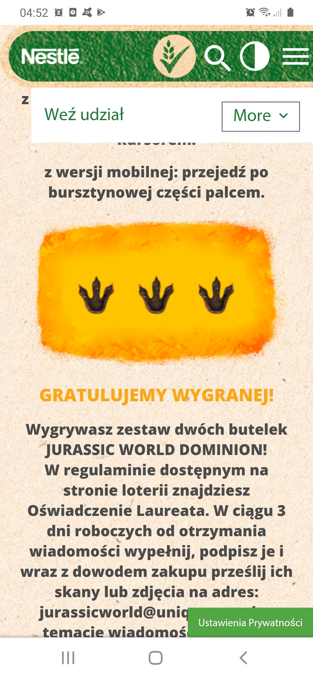 Udało się wygrać przed kilkoma minutami butelki Nestle