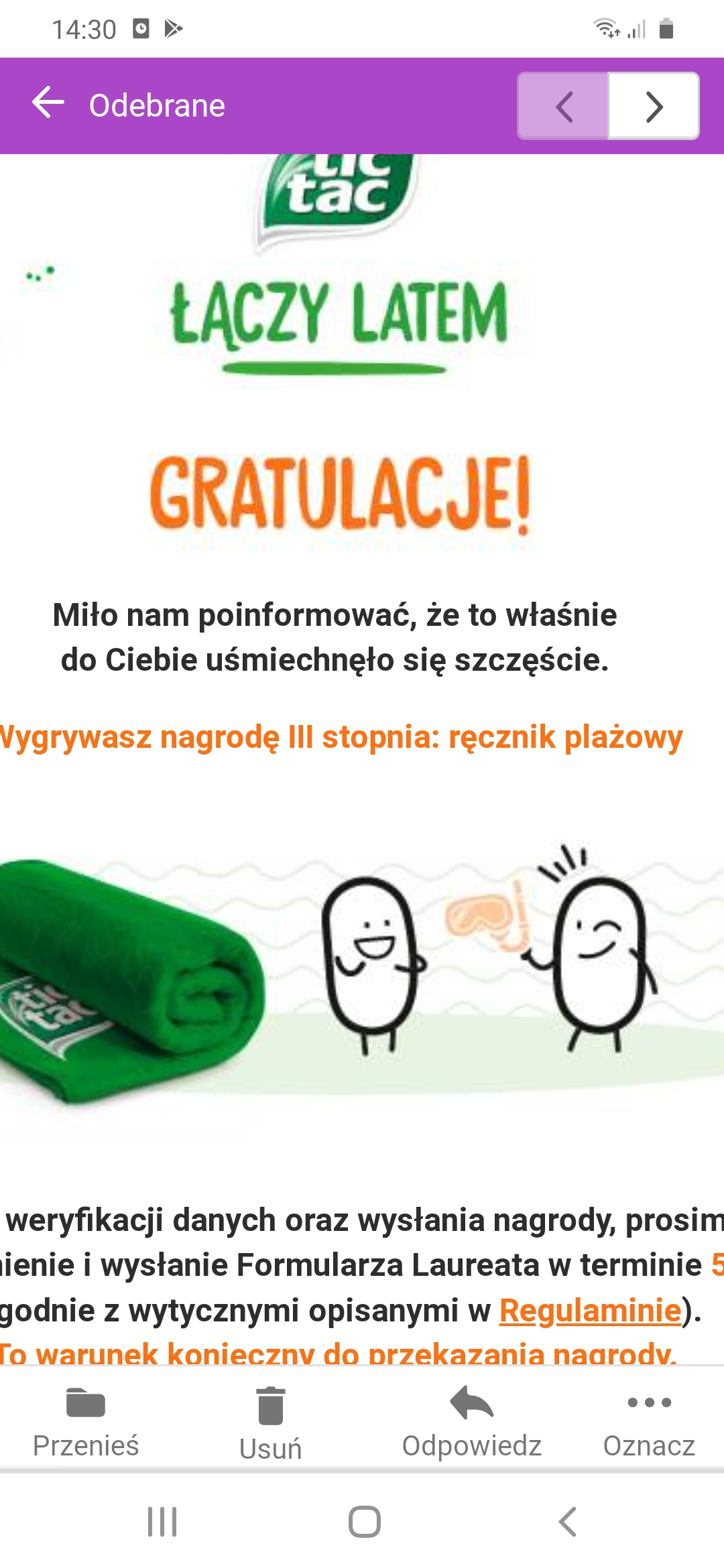 W poniedziałek o 18 wiadomość o wygranej, odesłałam godzinę później, a już dzisiaj nagroda u mnie