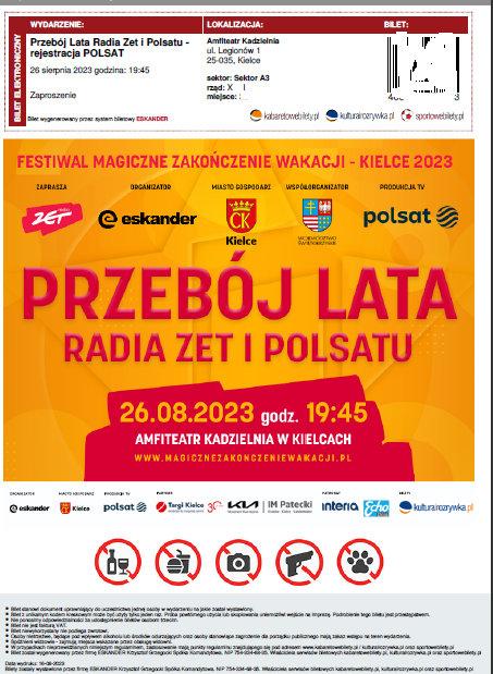 Mam bilety na FESTIWAL MAGICZNE ZAKOŃCZENIE WAKACJI 2023 - POLSAT Kadzielnia w Kielcach.