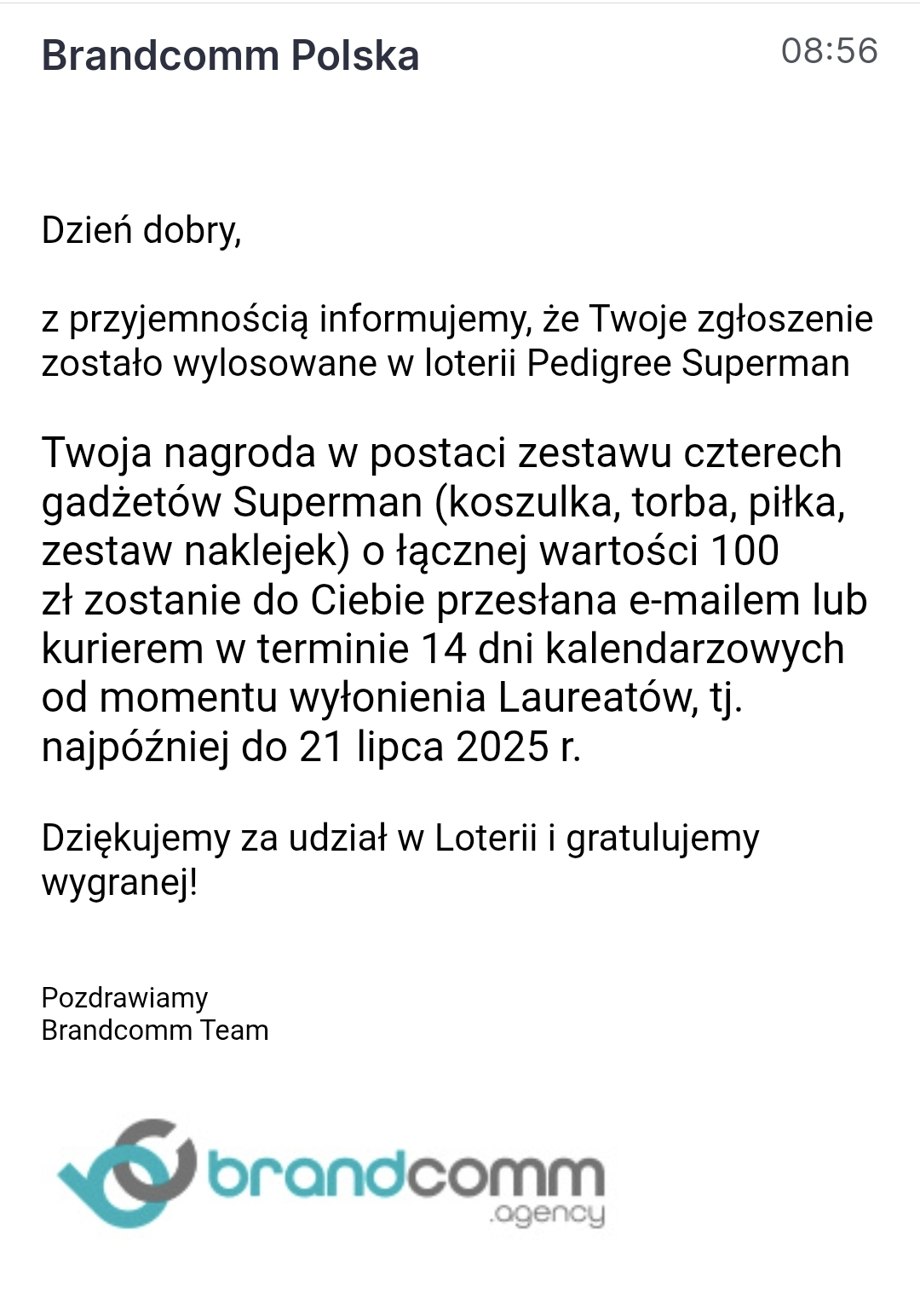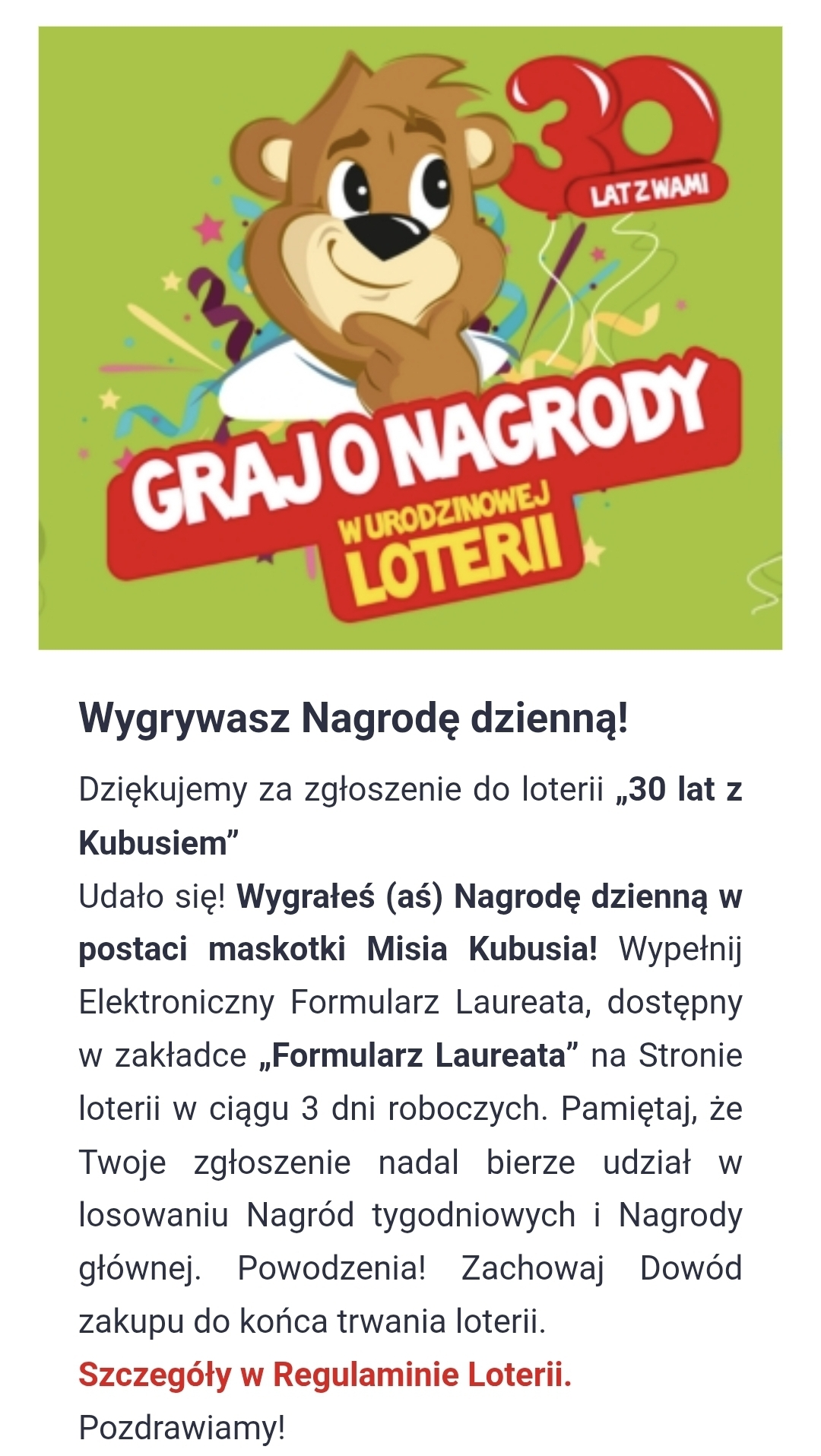 2. Wszyscy autorzy zwycięskich Życzeń zostaną powiadomieni o wygranej oraz trybie jej wydania w ciągu 10 dni roboczych od dnia, w którym dokonano wyboru Życzeń, najpóźniej 24 czerwca 2025r.