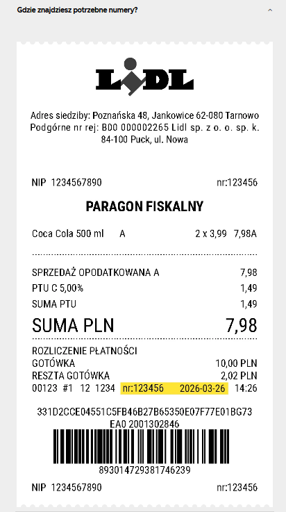 loteria coca cola w lidlu nr paragonu ten na dole po środku