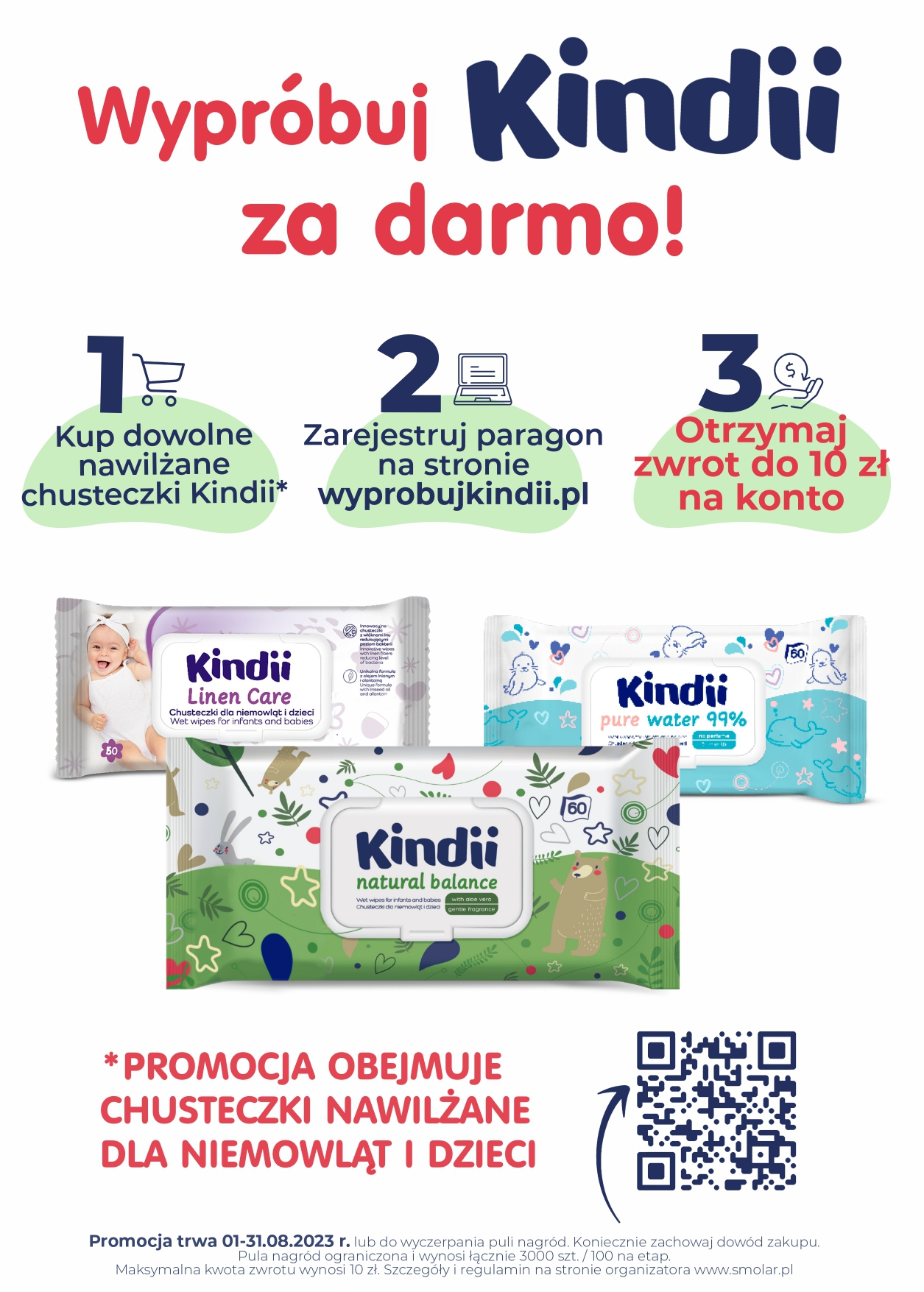 Promocja obejmuje wszystkie produkty marki Kindii i trwa od 1 do 23 lipca 2023 roku w sieci sklepów Rossmann.
