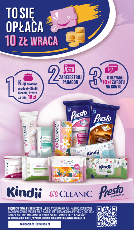 1. Kup dowolne produkty Kindii, Cleanic, Presto za min.10 zł
