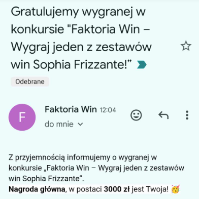 Wymienię moją zwycięską odpowiedź z Sophia Frizzante, Faktoria Win (Główna nagroda) na zwycięskie odpowiedzi w Konkursach z Żywiec Zdrój Minerals+ (Albedo Marketing), chętni priv