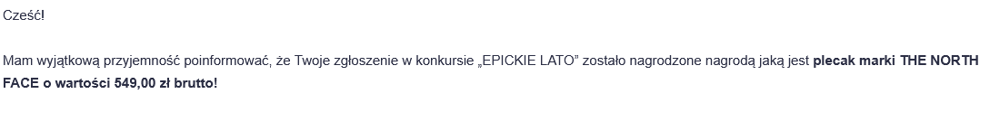 Jest i Revoss! Uff... Obiecałem żonie i się udało emotka Mail z 13:34 (trafił do spamu). Tylko dziwnie tak nie wiedzieć co się wygrało emotka Wyświetl w wątku >>